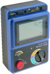 Измеритель сопротивления изоляции МЕГЕОН 13200 представляет собой портативный прибор для измерения сопротивления изоляции с использованием высоких значений испытательных напряжений ( до 1000 Вольт). Корпус прибора имеет стильный двухцветный внешний вид и яркие наклейки- указатели. Для проведения испытаний предусмотрено пять тестовых напряжений: 50В, 100В, 250В, 500В, 1000В. А также предусмотрено выключение испытательного напряжения по окончании измерения. Благодаря наличию яркой светодиодной подсветки дисплея предоставлена возможность работы в условия недостаточной видимости или в отсутсвуии освещения. Для сохранения уровня заряда элементов питания предусмотрена функция автоматического выключения питания. Измеритель сопротивления изоляции (мегаомметр) внесен в государственный реестр СИ, под номером 74507-19, срок периодической поверки составляет два года.