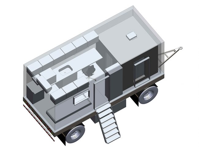 Камера радиационной защиты представляет собой каркасную конструкцию из свинца и стали, размещенную в фургоне (КУНГе) на колесной платформе. Платформа имеет сцепное устройство и может быть отбуксирована непосредственно на участок контроля. Помимо камеры радиационной защиты в модуле фургона имеется помещение, предназначенное для работы дефектоскописта.